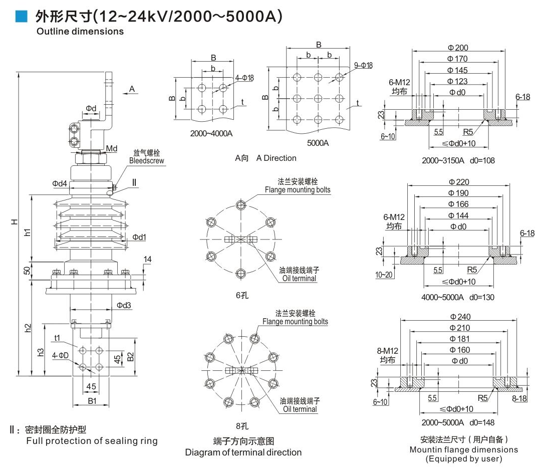 鋁法蘭瓷套管12~24kV/2000~5000A穿桿式套管