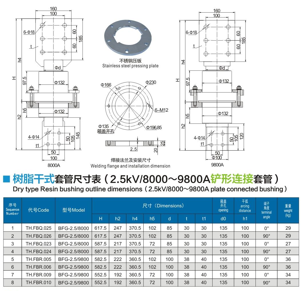 樹(shù)脂干式套管2.5kV/8000~9800A鏟形連接套管