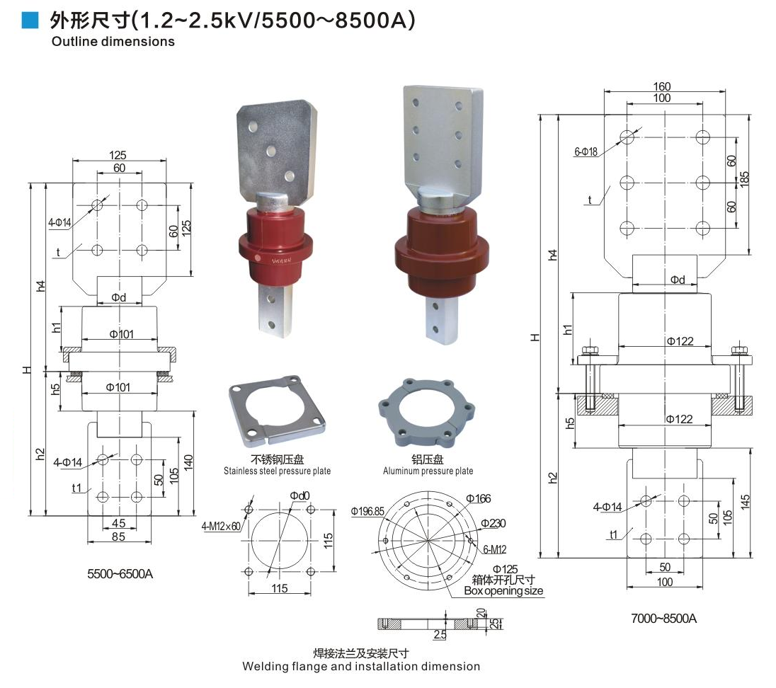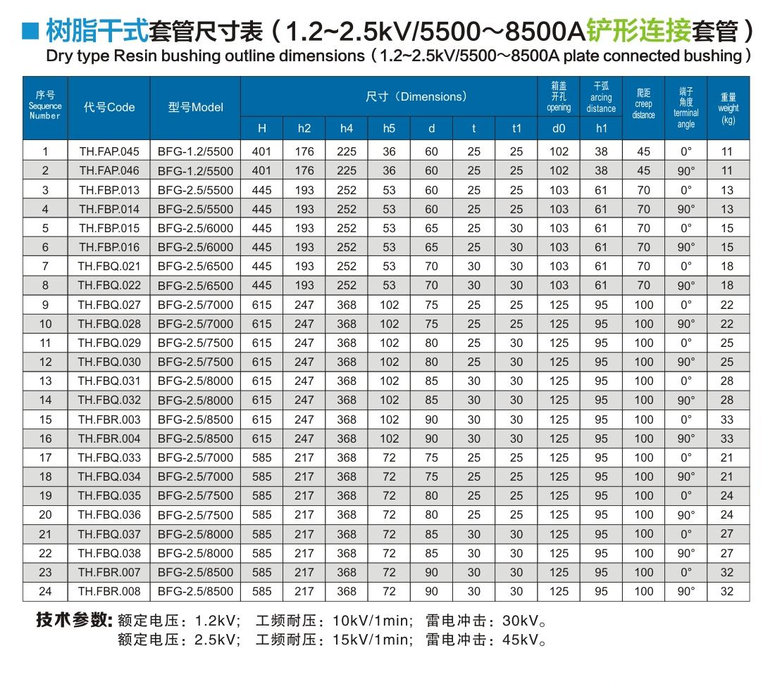樹(shù)脂干式套管1.2~2.5kV/5500~8500A鏟形連接套管