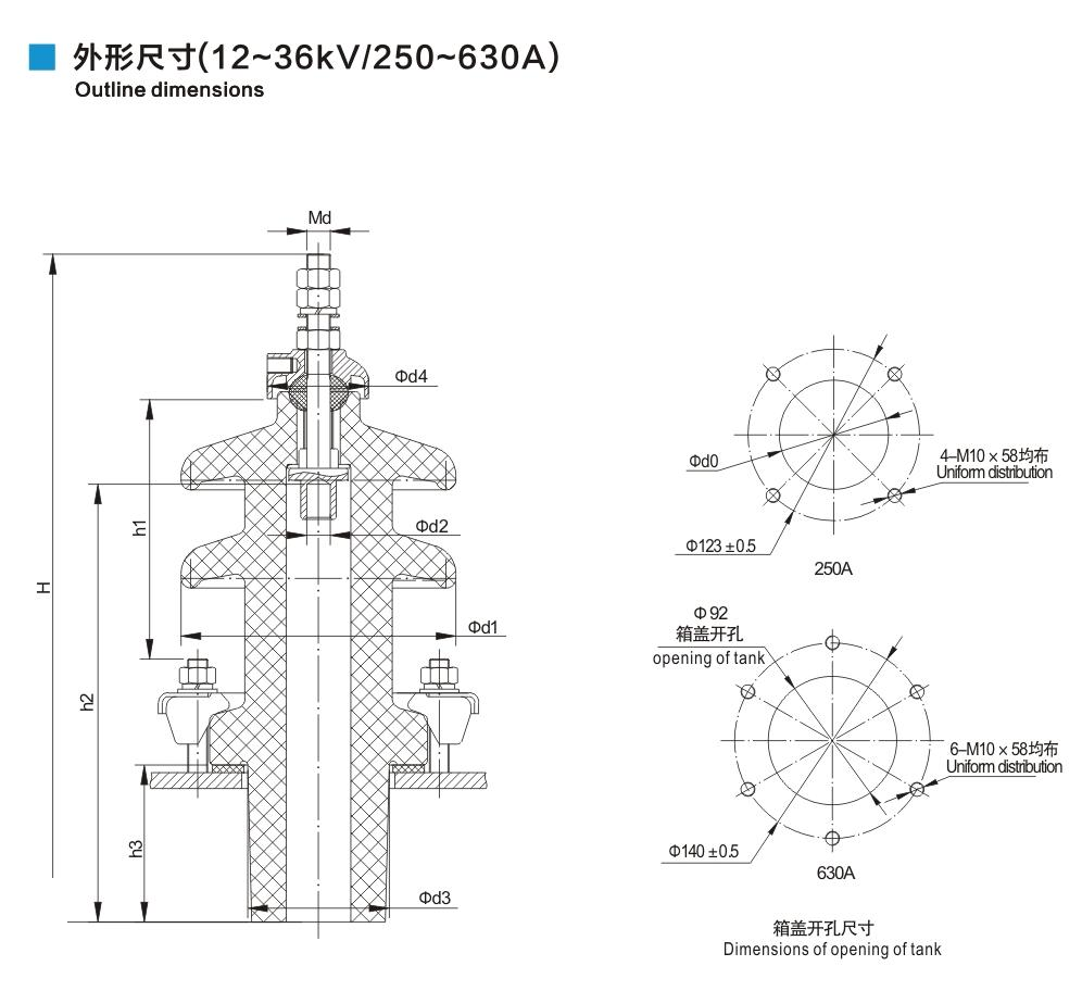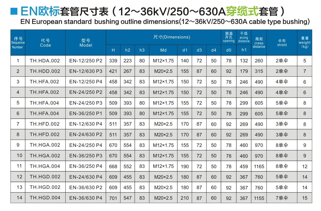 EN歐標(biāo)套管12~36kV /250~630A穿纜式套管