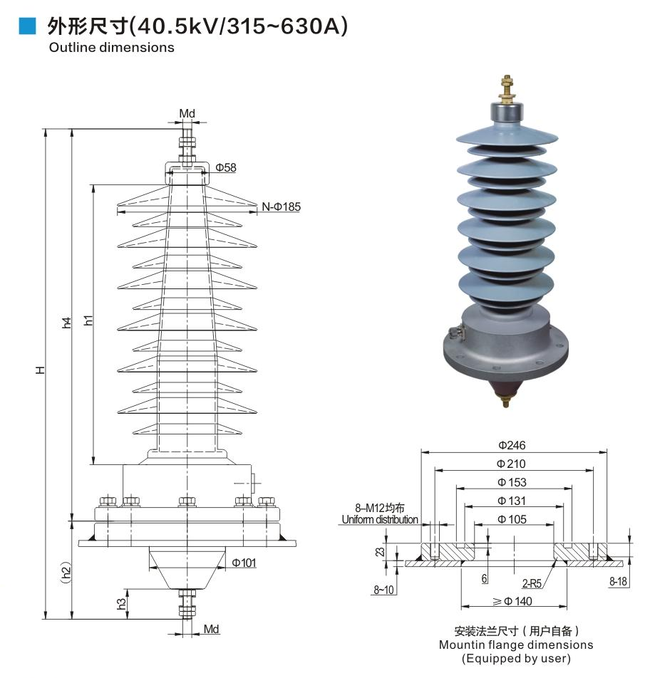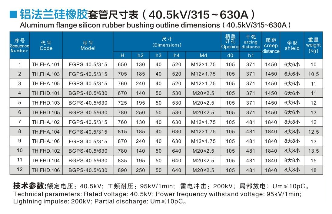 鋁法蘭硅橡膠套管40.5kV/315~630A