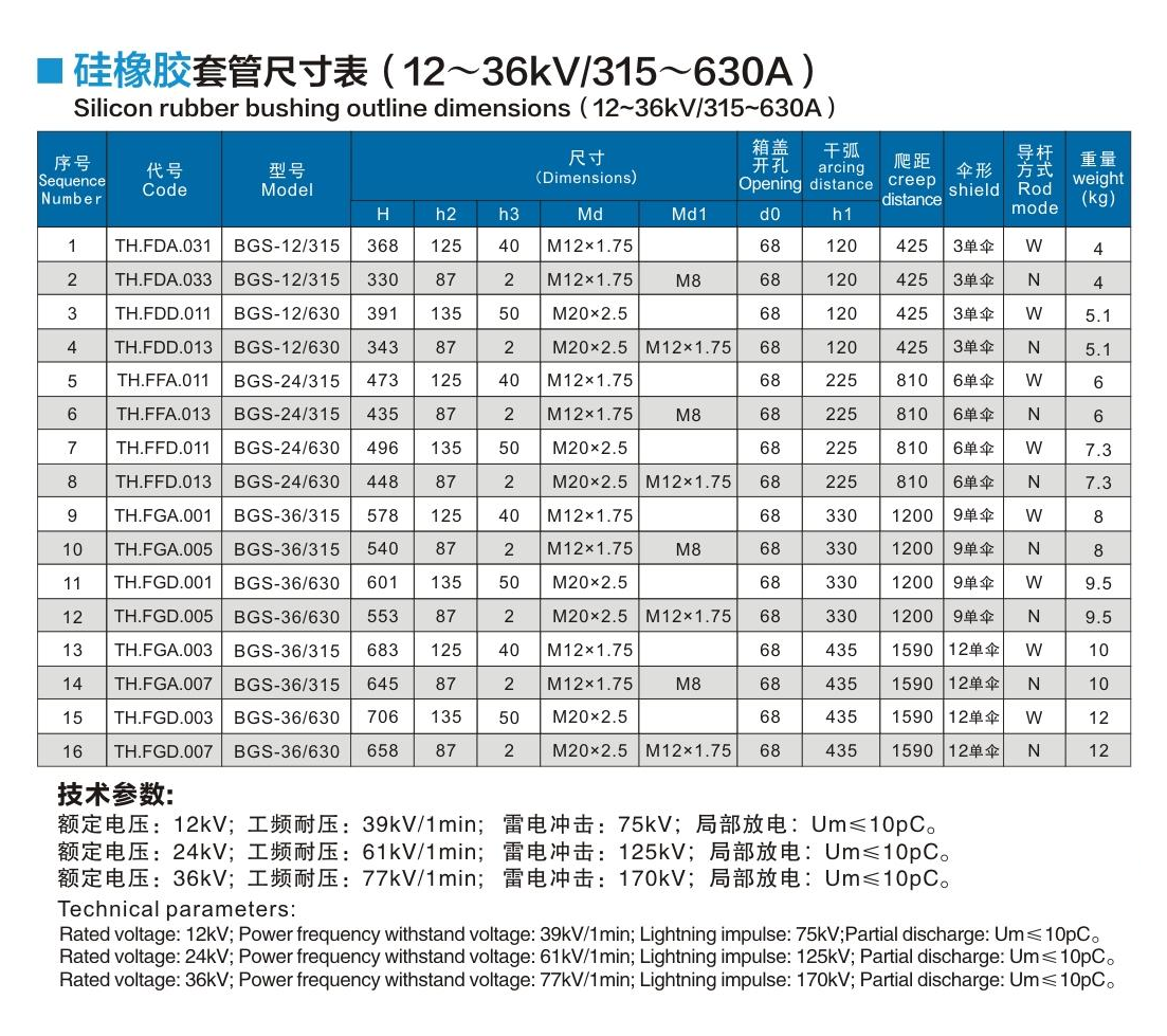 硅橡膠套管12~36kV/315~630A